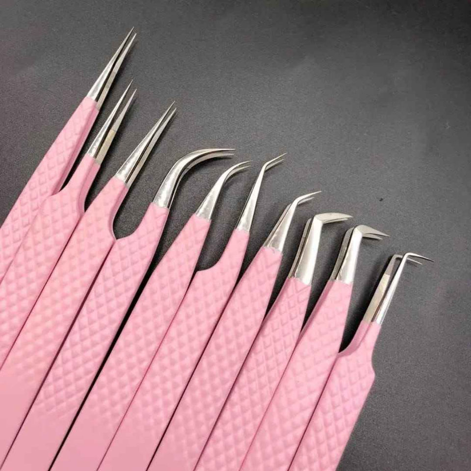 Kit de pinces à épiler pour extensions de cils en acier inoxydable personnalisé, anti-magnétique, avec poignée confortable, professionnel pour volume/isolation des cils