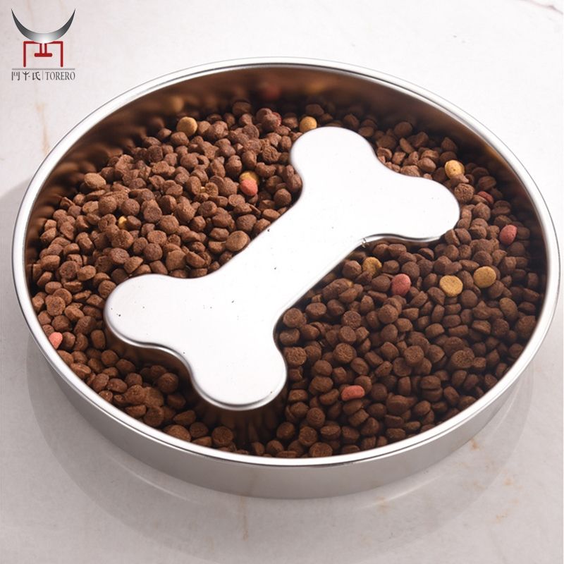 Bol de nourriture lente durable en acier inoxydable personnalisé Double face utiliser des collations plateau de nourriture bol de collation pour chats chiens prévention rapide
