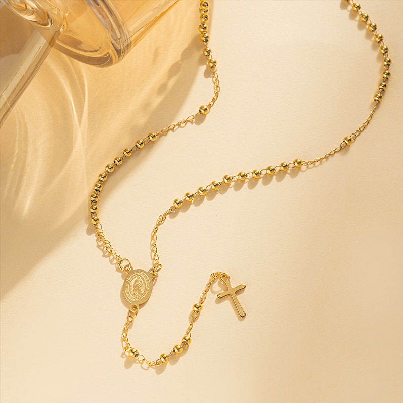 Collier de perles rondes en acier inoxydable personnalisé, collier de prière en acier inoxydable pour femmes
