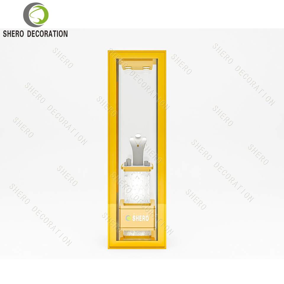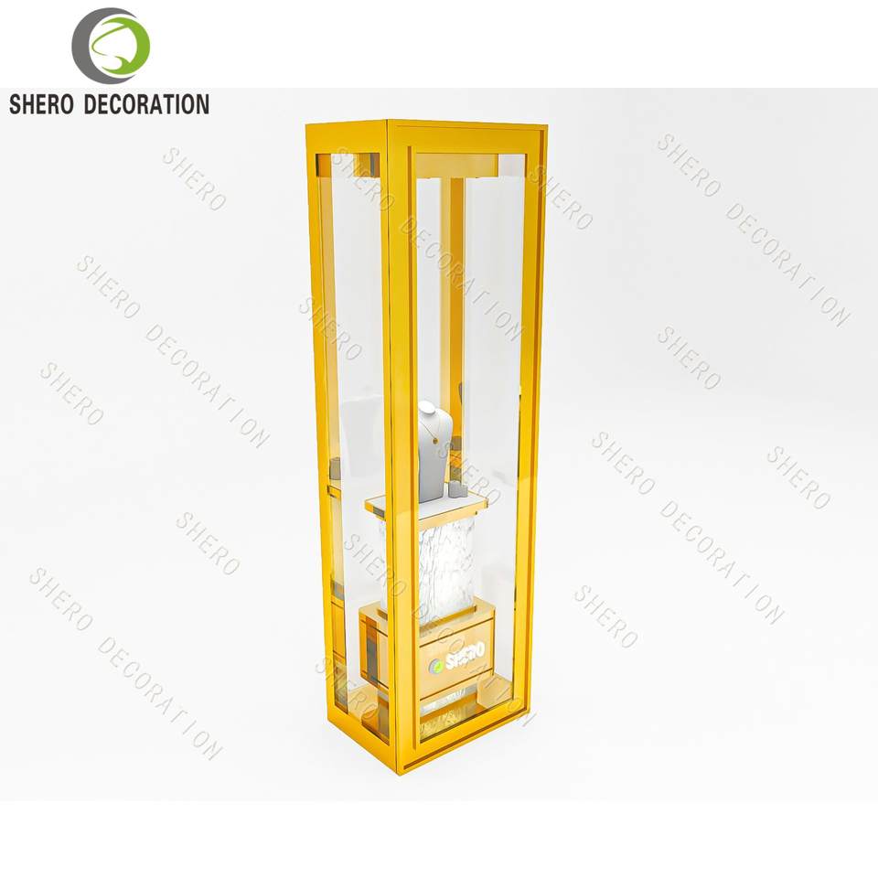 Vitrine de présentation de bijoux en acier inoxydable personnalisée avec fenêtre en verre pour magasin de détail