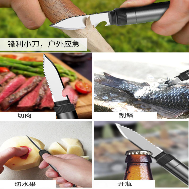 Ensemble de couteau, fourchette et cuillère en acier inoxydable personnalisé, pliable, multifonctionnel, pour le camping en plein air
