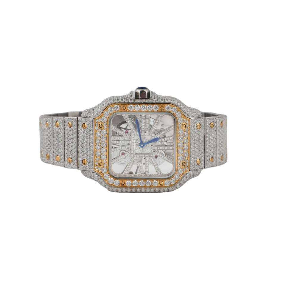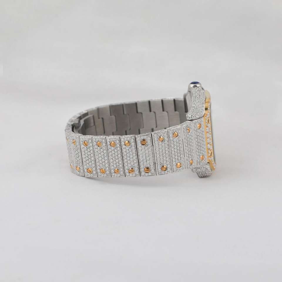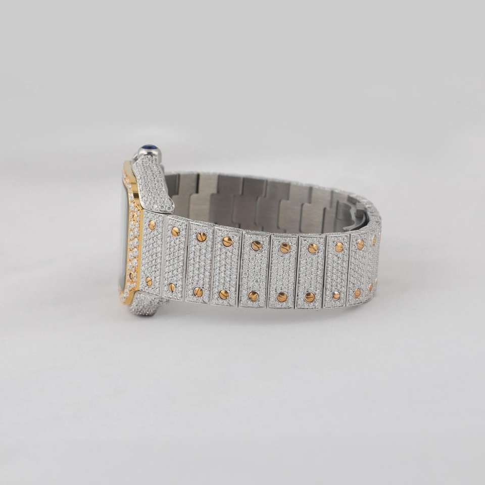 Montre Hip Hop de Luxe pour Homme en Acier Inoxydable Personnalisée, Boîtier Carré, Sertie de Diamants Moissanite Ronds, Style Antique, Cadran en Verre
