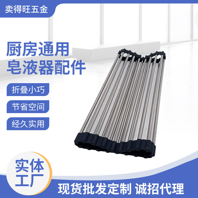 Étagère pliable en acier inoxydable sur mesure pour fruits et légumes, avec rideau de drainage en tube rond et tapis isolant thermique carré