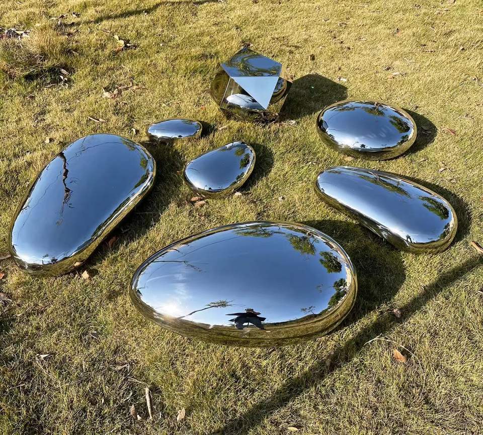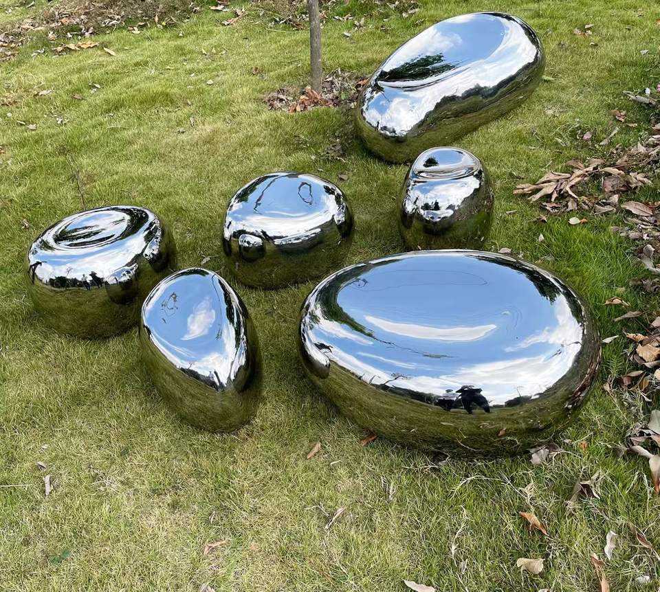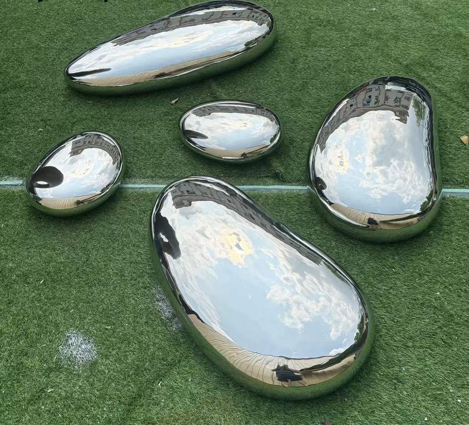 Sculpture personnalisée en acier inoxydable en forme de galet en forme de goutte d'eau