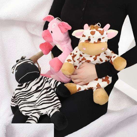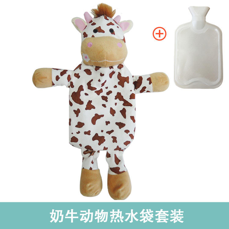Bouteille d'eau chaude en polyester personnalisée, réutilisable, mignonne, remplie d'eau, style animal, épaisse, en peluche de dessin animé