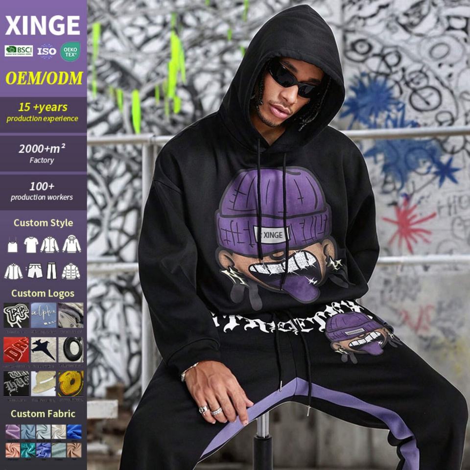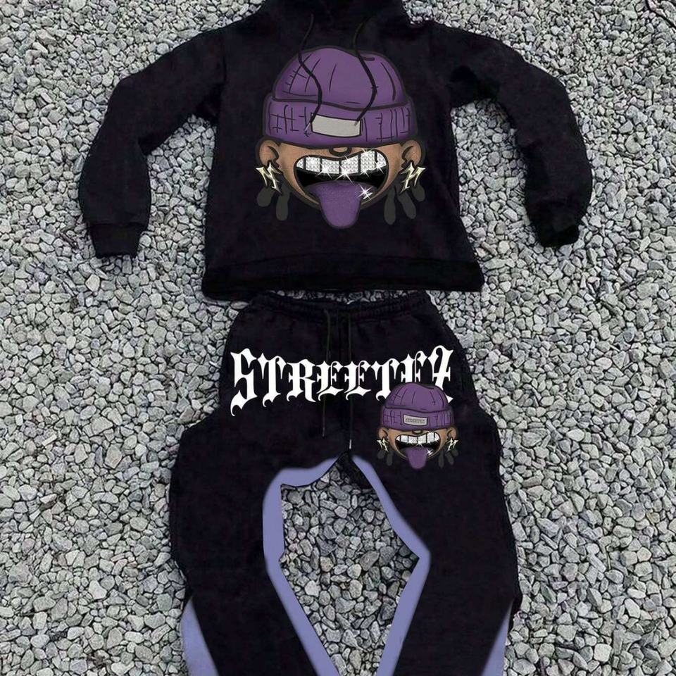 Numéro de Type:CUS250626-Hip Hop Graphic Print 2 Piece Hoodie Set