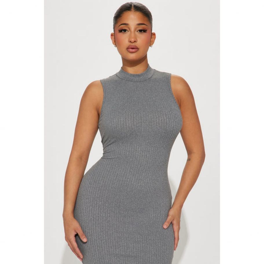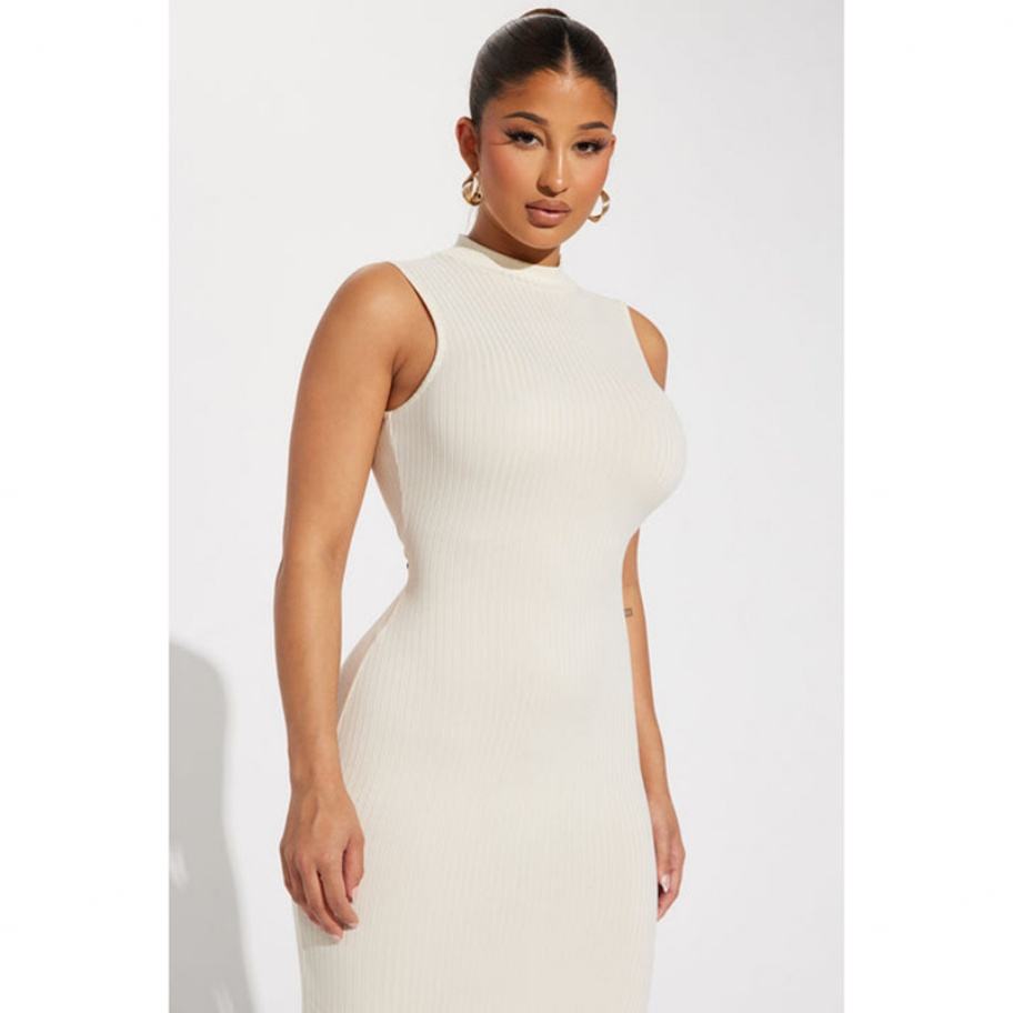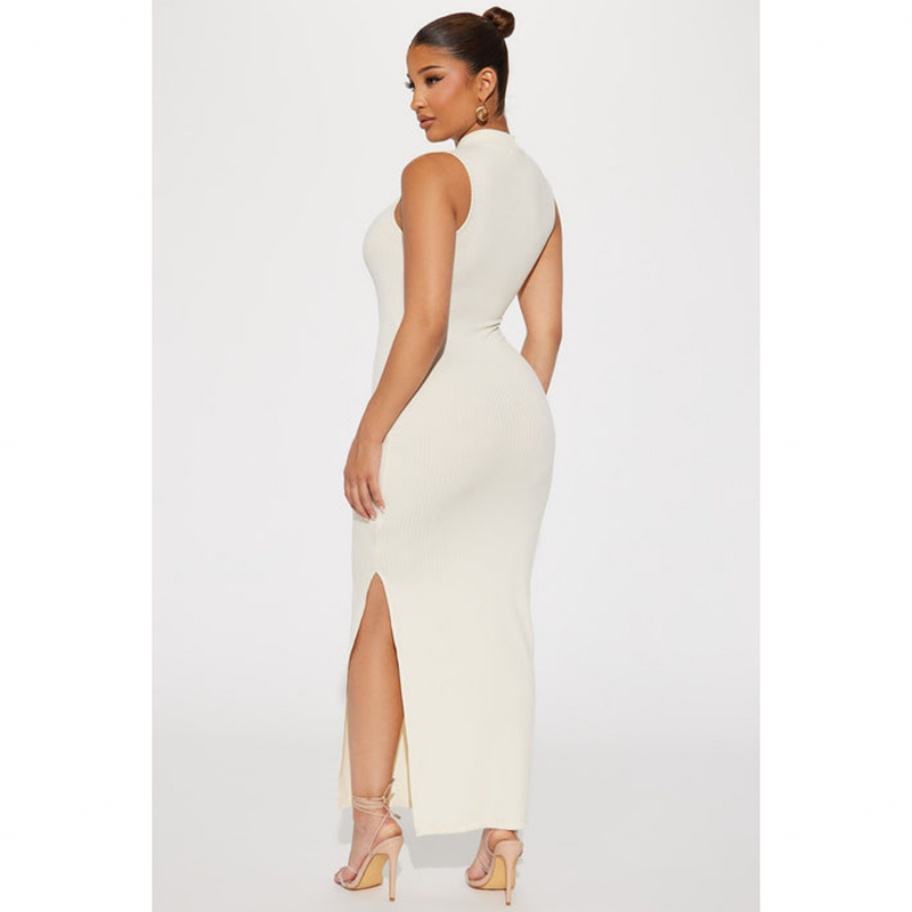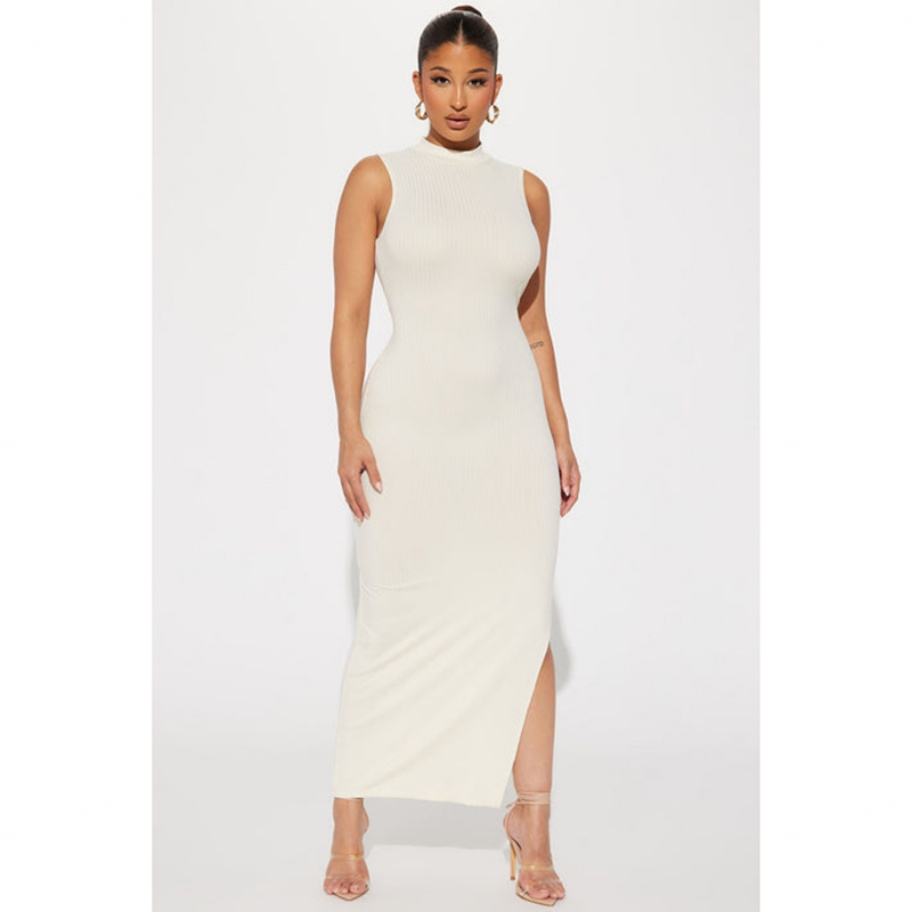 Robe décontractée pour femme, sans manches, col montant côtelé, fente latérale haute, extensible, style personnalisé, haute qualité