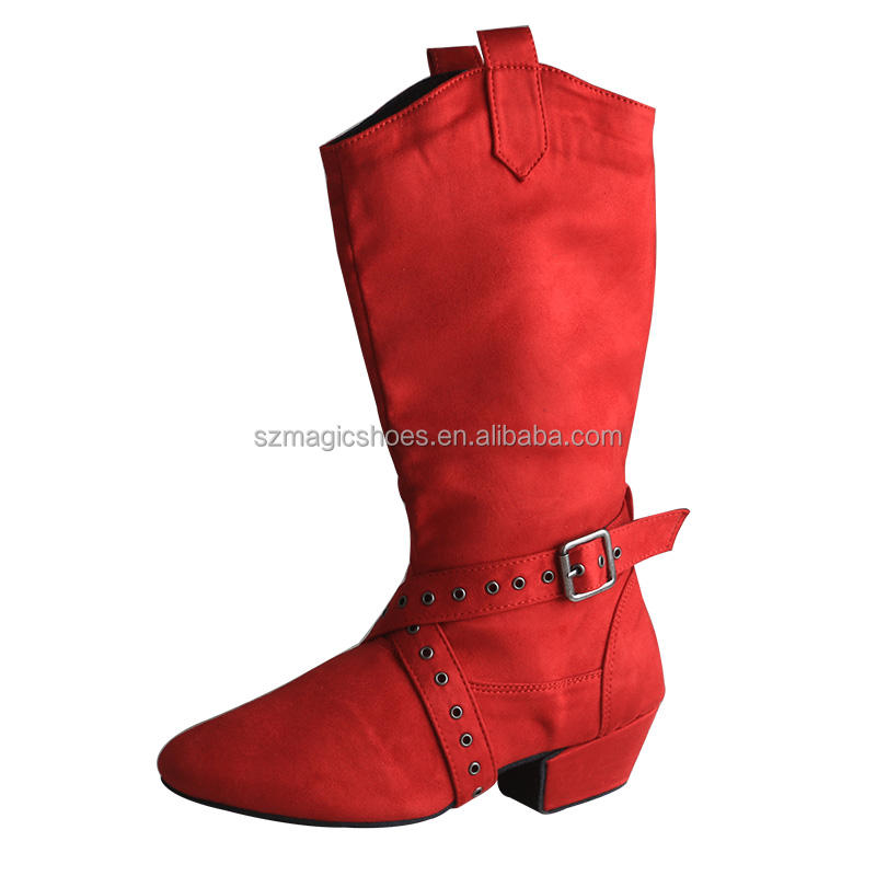 Bottes de danse latine pour femmes personnalisées avec semelle en daim vert menthe longue ligne d'échauffement chaussures West Coast Swing bottes de danse
