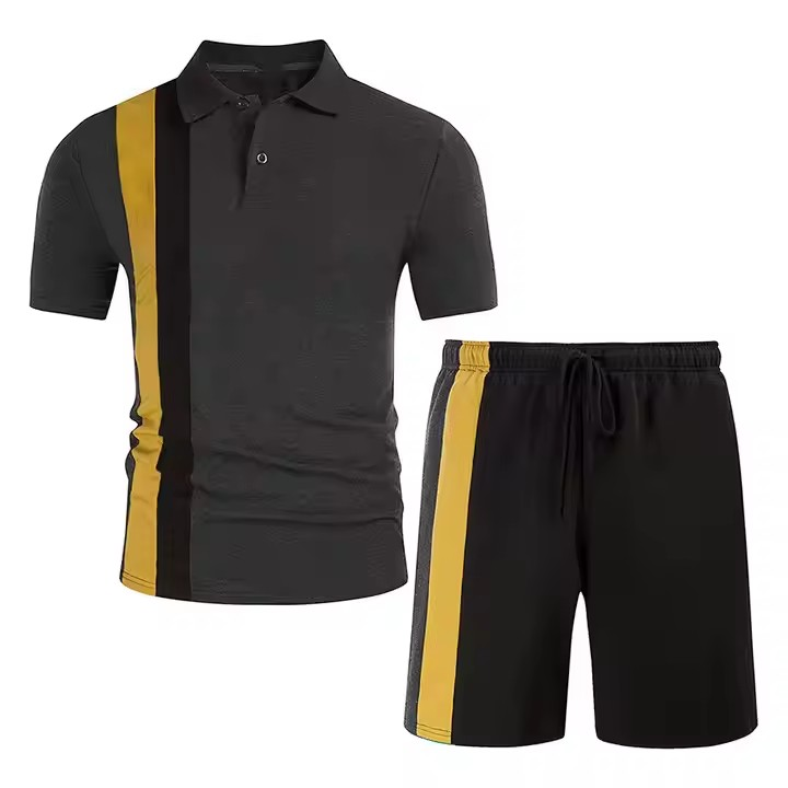 Personnalisé été couleur unie hommes Polo revers short à manches courtes sport décontracté été hommes deux pièces ensemble