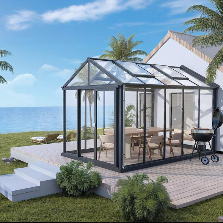 Véranda en aluminium isolée sur mesure avec verre trempé, autoportante