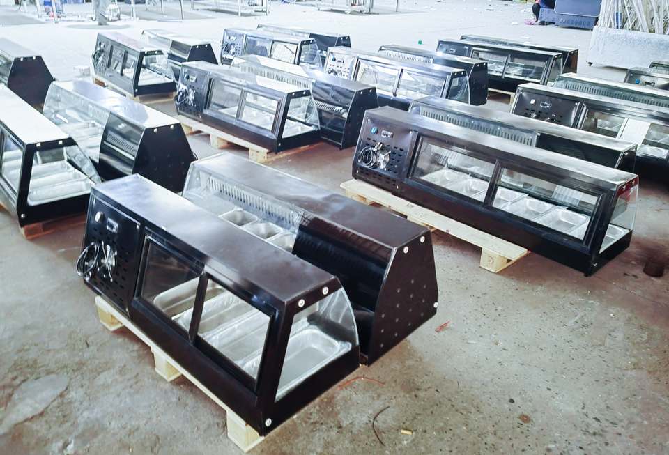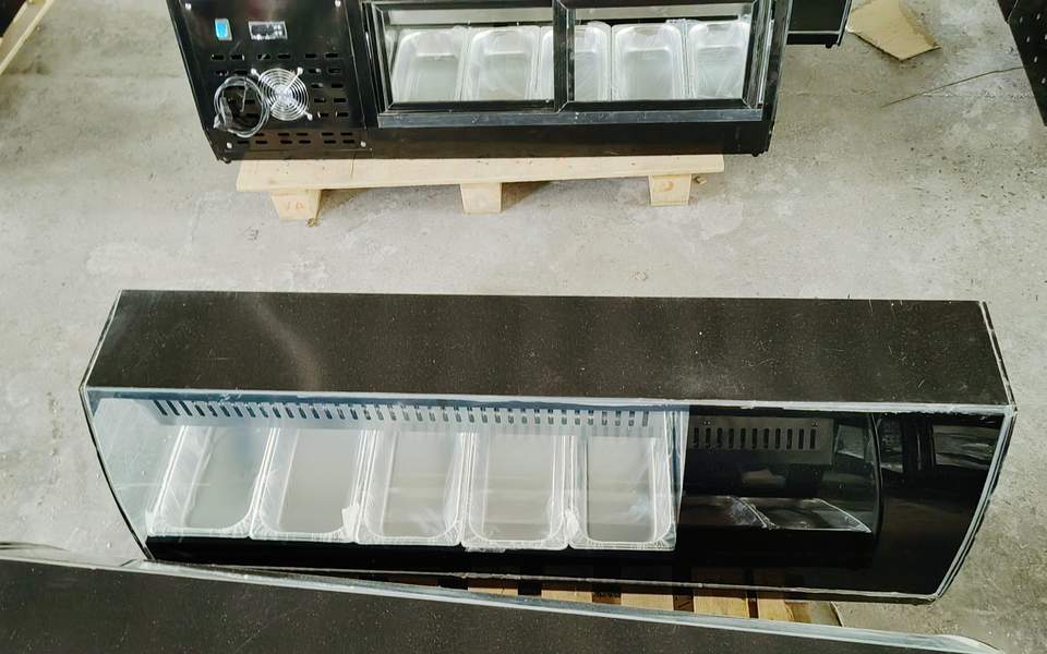 Vitrine réfrigérée personnalisée pour sushis, congélateur de comptoir à dégivrage automatique pour station de préparation alimentaire