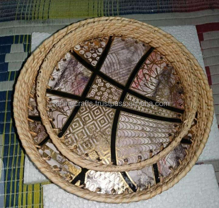 Plateau de service alimentaire en bois et en rotin poli durable personnalisé avec motif floral imprimé Vente en gros disponible