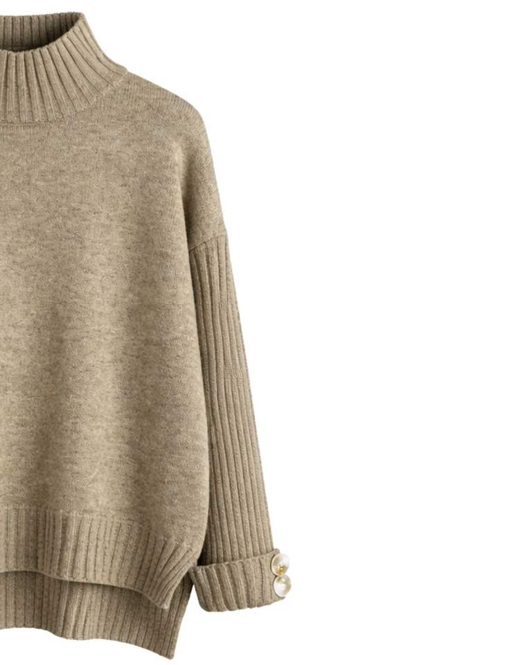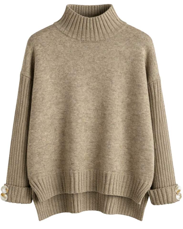 Ensemble de pull en tricot taupe personnalisé et pantalon large pour femmes, pull à col montant, vêtements de détente confortables pour l'hiver, fabricant personnalisé OEM
