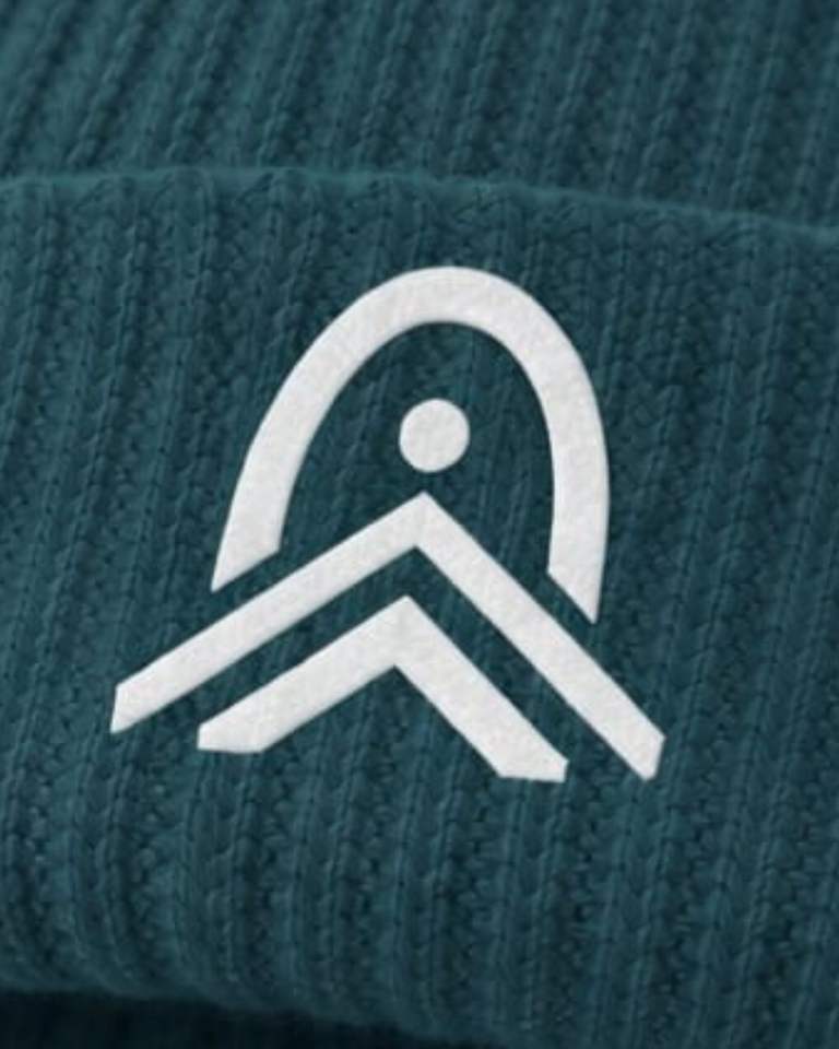 Bonnet en tricot côtelé turquoise personnalisé avec logo brodé blanc, chaud et doux pour l'hiver, en acrylique, fabrication sur mesure OEM, unisexe