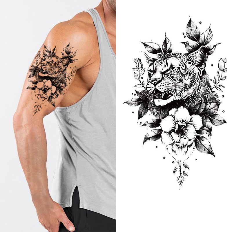 Autocollant de tatouage temporaire personnalisé, belle fleur, tribu, bête, totem pour fête, tatouage temporaire factice pour le corps