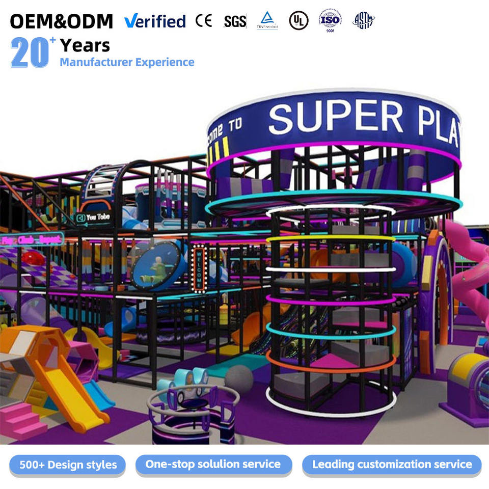 Équipement de terrain de jeu interactif commercial pour enfants à thème personnalisé Ensemble de terrain de jeu intérieur pour tout-petits avec grand toboggan