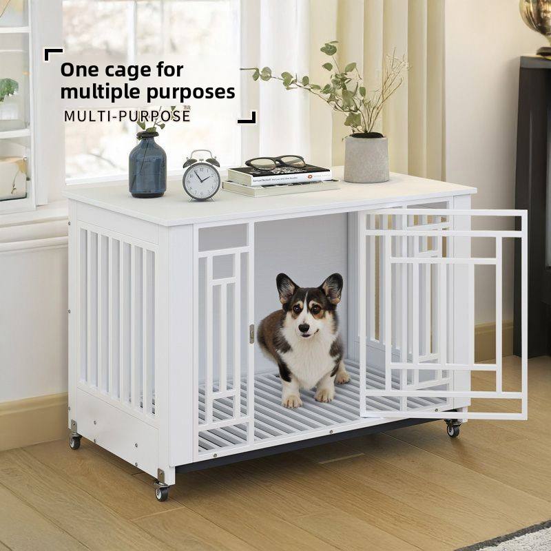Cage pour animaux de compagnie épaisse personnalisée, motif solide, cage en métal d'intérieur, traitement des boutons, plateau en plastique pour chiens de taille moyenne à grande