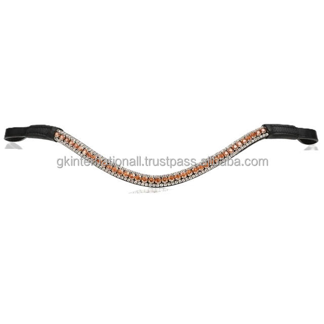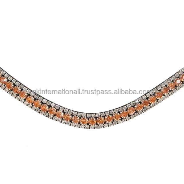 Bandeau de tête pour cheval de course en cuir noir ondulé avec chaîne de cristaux brillants à trois rangées personnalisée et équipement équestre