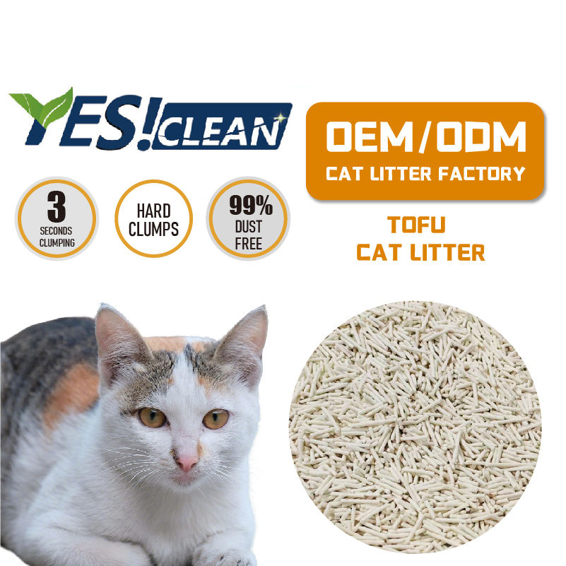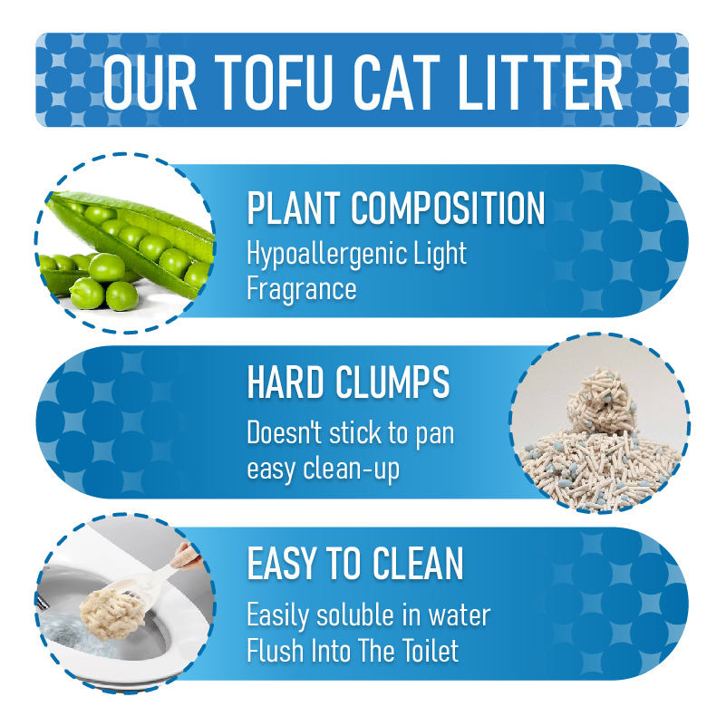 Litière pour chat en tofu personnalisée avec formule désodorisante et antiseptique et action de compactation rapide