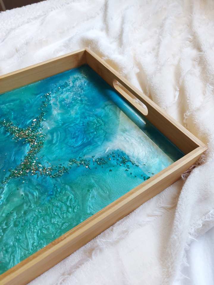 Fourniture en gros Plateau en bois unique en résine fait à la main pour les repas, les collations au café et les repas en cuisine d'Inde