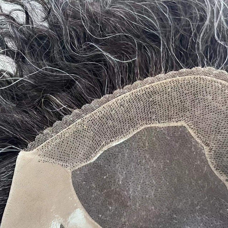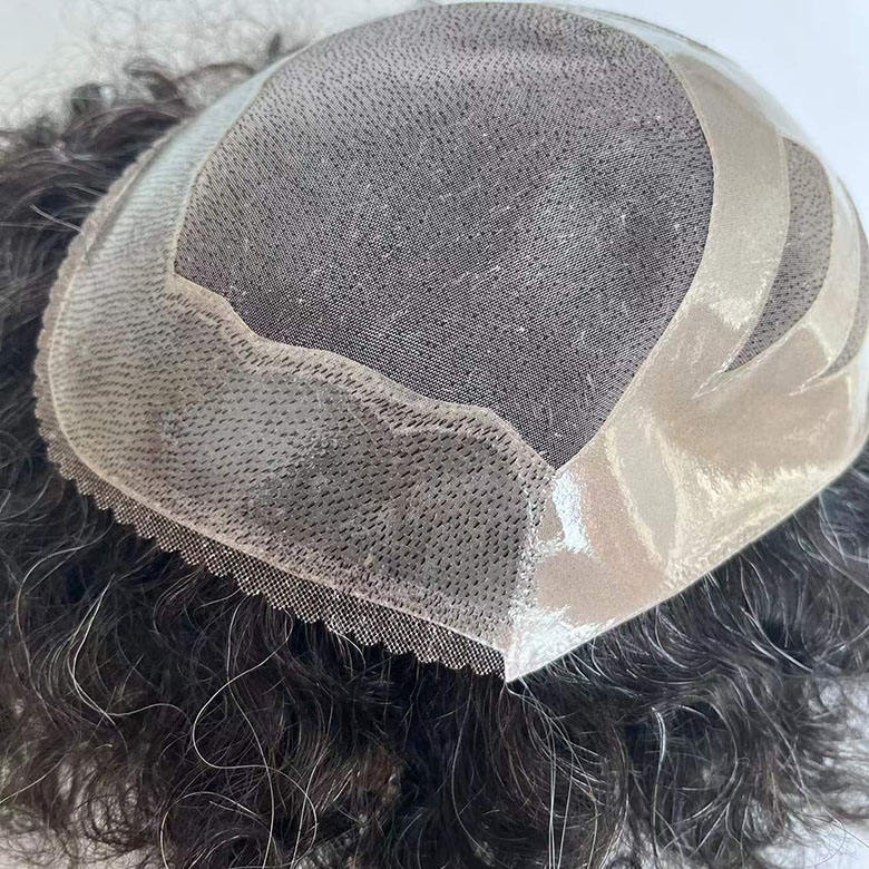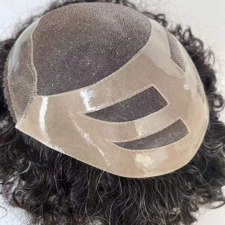 Prothèse capillaire personnalisée à base mono pour hommes, style bouclé