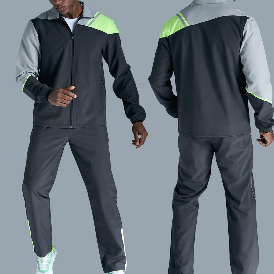 Ensemble de survêtement personnalisé 2 pièces : veste coupe-vent et pantalon de survêtement décontracté avec réflecteurs, en nylon et polyester respirant