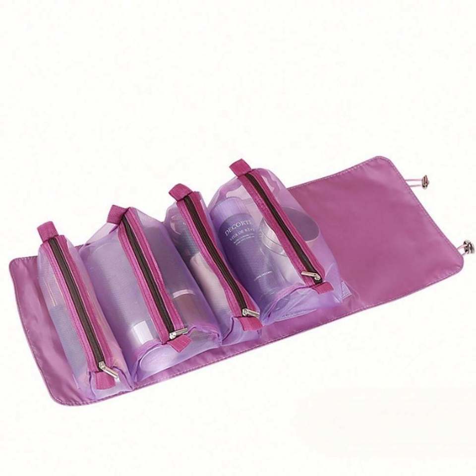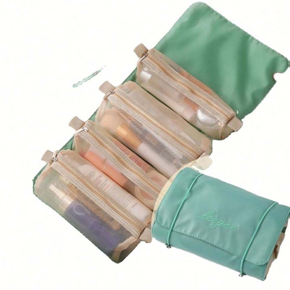 Sacs de maquillage cosmétiques en polyester personnalisés, multifonctionnels, 4-en-1, avec logo imprimé, rangement amovible, grande capacité, avec fermeture éclair