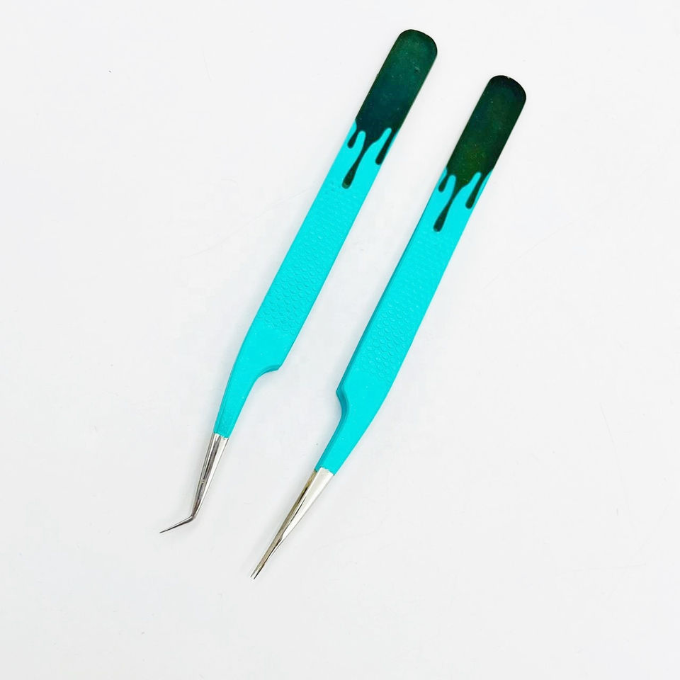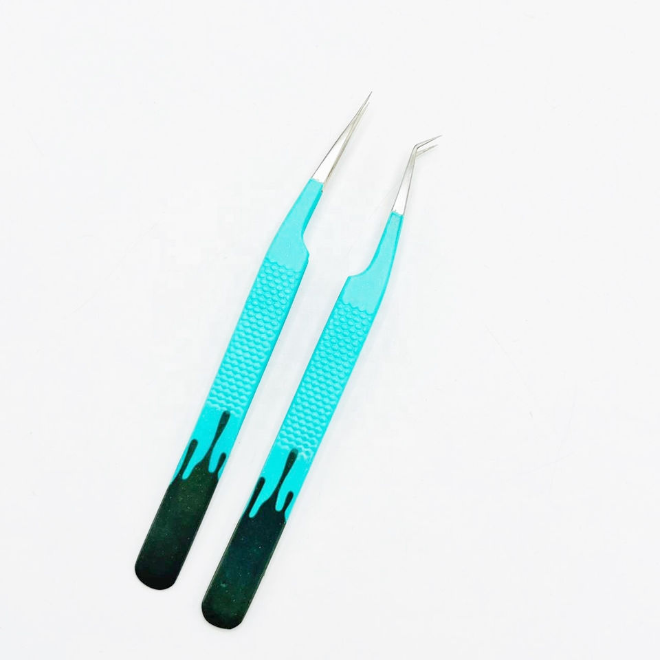 Pince à épiler d'isolation classique bicolore personnalisée à 45 degrés Texture de pointe lisse Pince à cils en acier durable Couleurs personnalisées