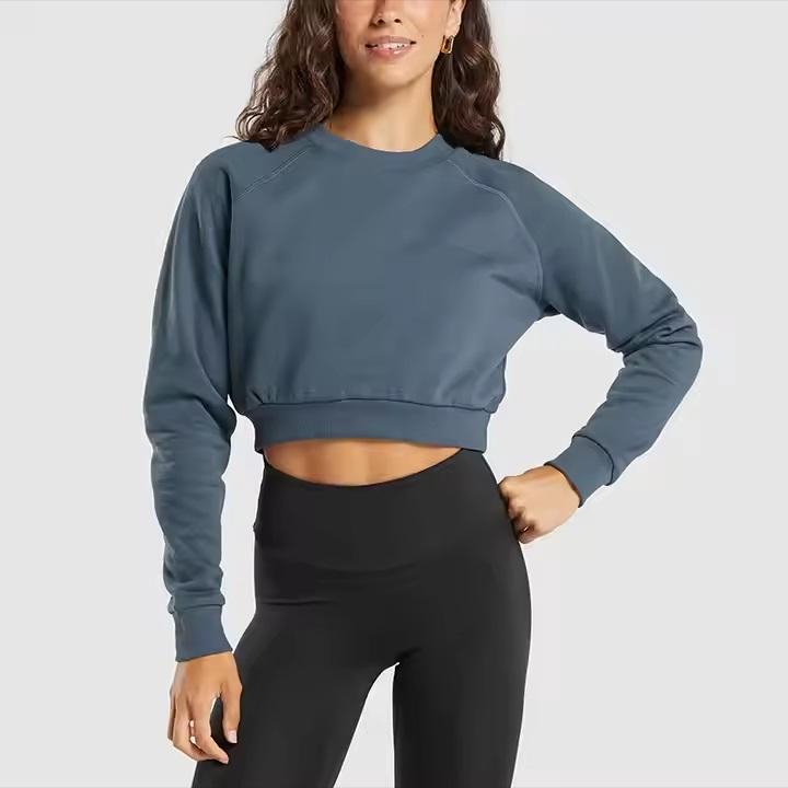 Sweat à capuche à col ras du cou en polaire personnalisé de taille américaine pour femmes, vêtements de gymnastique d'hiver, de fitness et de yoga, manches raglan, tricot en coton et polyester