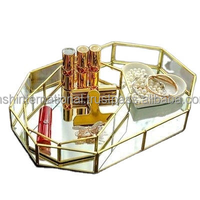 Plateau en cristal unique personnalisé Plateau de service transparent Plateau en acrylique avec poignée en métal doré pour hôtel Restaurant 2 acheteurs