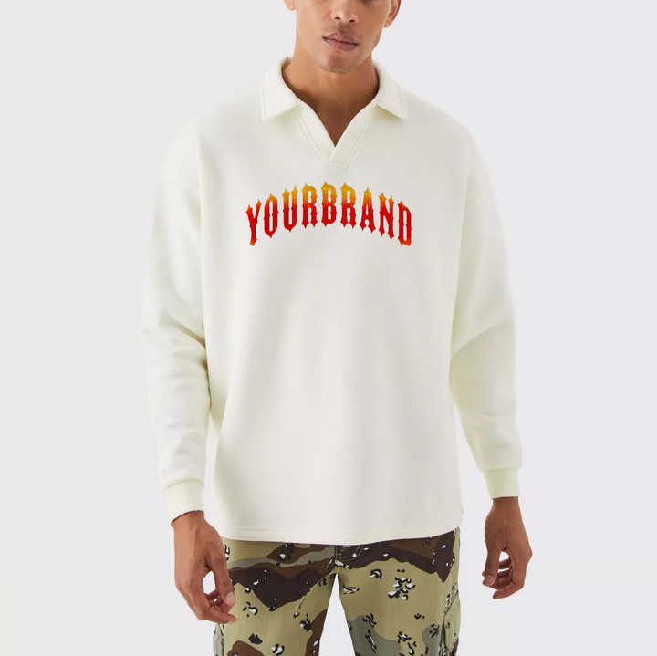 Polo personnalisé à col en V pour homme, coupe ample, 100 % coton épais, manches longues, impression numérique, logo personnalisé