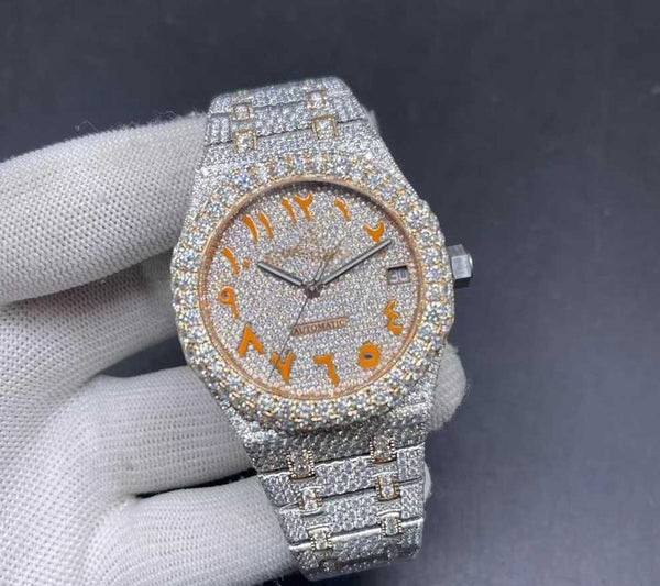 VVS personnalisé Moissanite Diamant Cadran Arabe Acier Inoxydable Glacé Automatique Montre-Bracelet Hip Hop Luxe Mode Pour Hommes