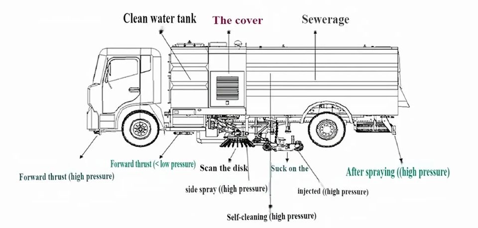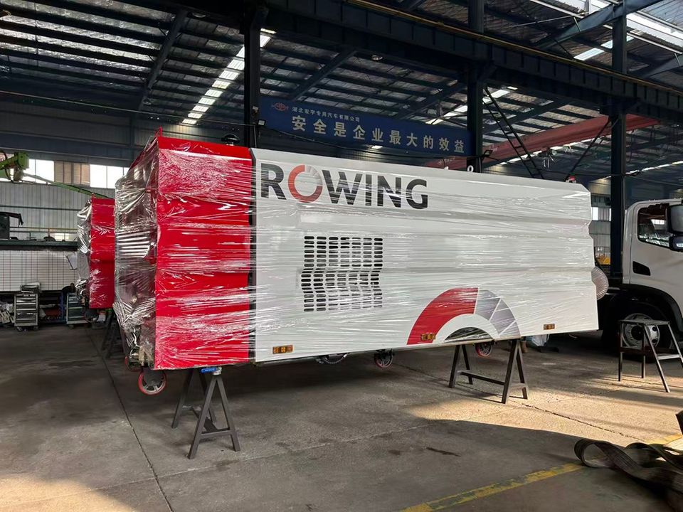 Camion balayeuse à vide personnalisé avec cuve et structure supérieures, doté d'un bac à déchets et d'un réservoir d'eau
