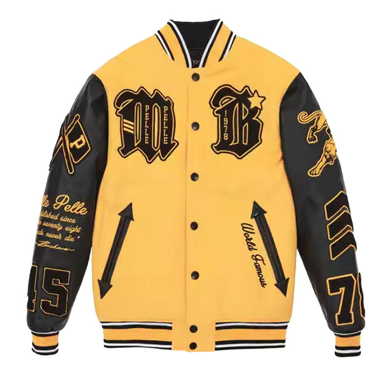 Vestes universitaires personnalisées Corps en laine Manches en cuir avec chenille et patchs brodés Veste collège unisexe OEM