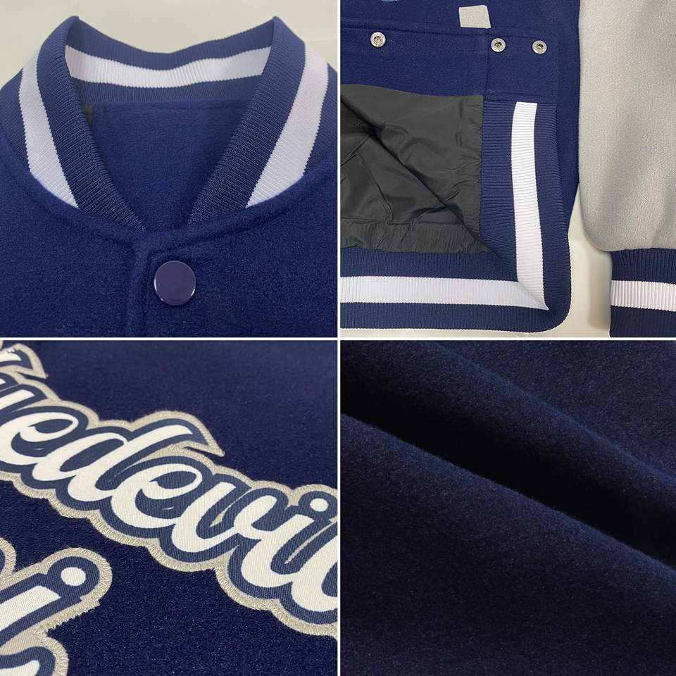 Vestes Letterman universitaires sportives personnalisées avec col montant mélange de laine manches en cuir PU Services OEM avec logo de numéro de nom