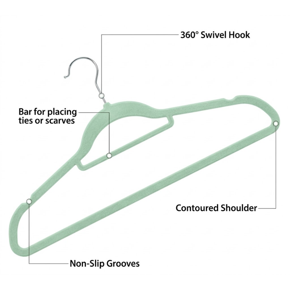 Cintre en velours personnalisé 42 cm, antidérapant, coupe-vent, écologique, de luxe, pour armoire, disponible chez Pavico VN