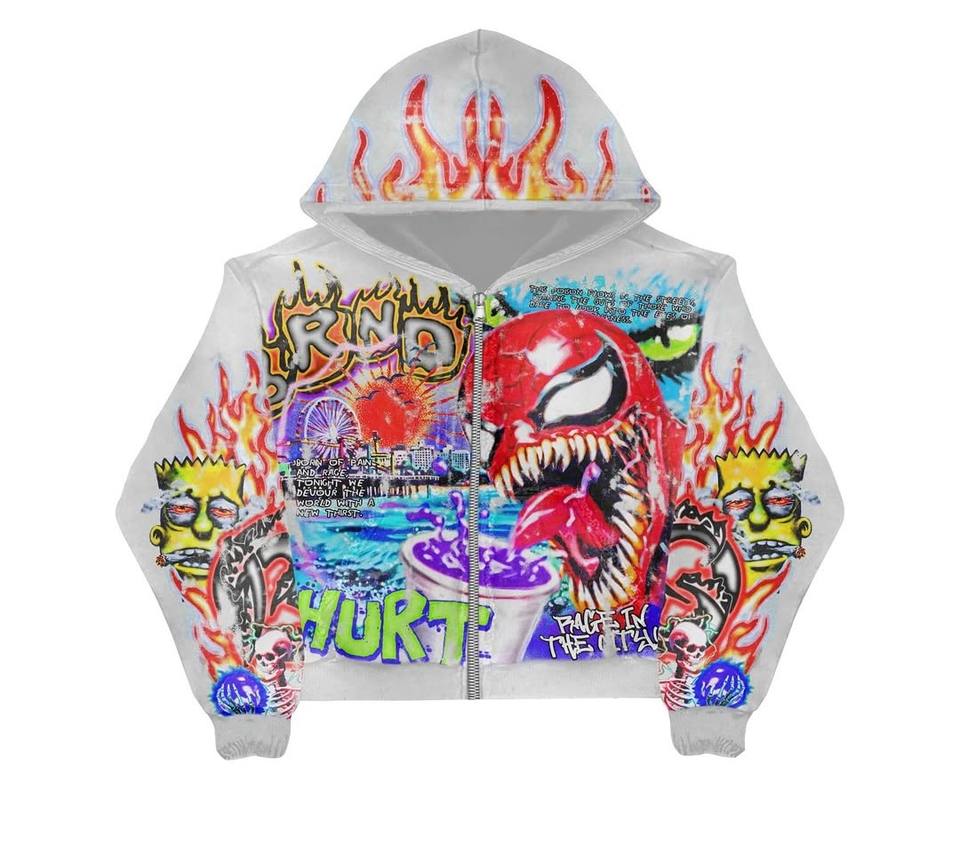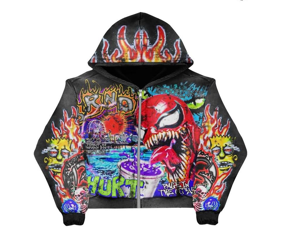 Sweat à capuche zippé personnalisé vintage délavé à l'acide 100% Coton Écologique Coupe-vent Brodé Imprimé Clouté Robuste