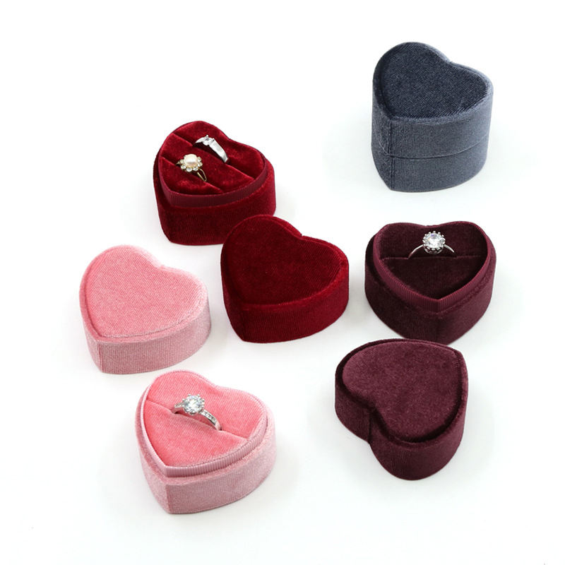 Boîte à bague personnalisée en forme de cœur vintage - Matériau en velours rose, emballage cadeau haut de gamme pour bijoux de mariage et de fiançailles