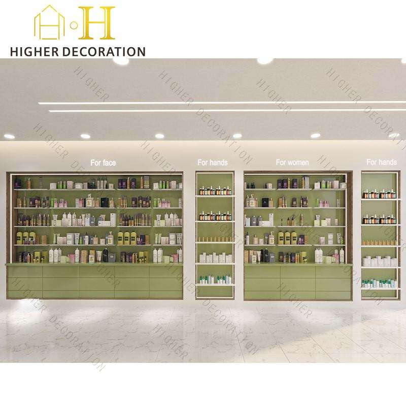 Mobilier de pharmacie mural personnalisé étagères de présentation cosmétique conception de pharmacie avec mobilier à vendre