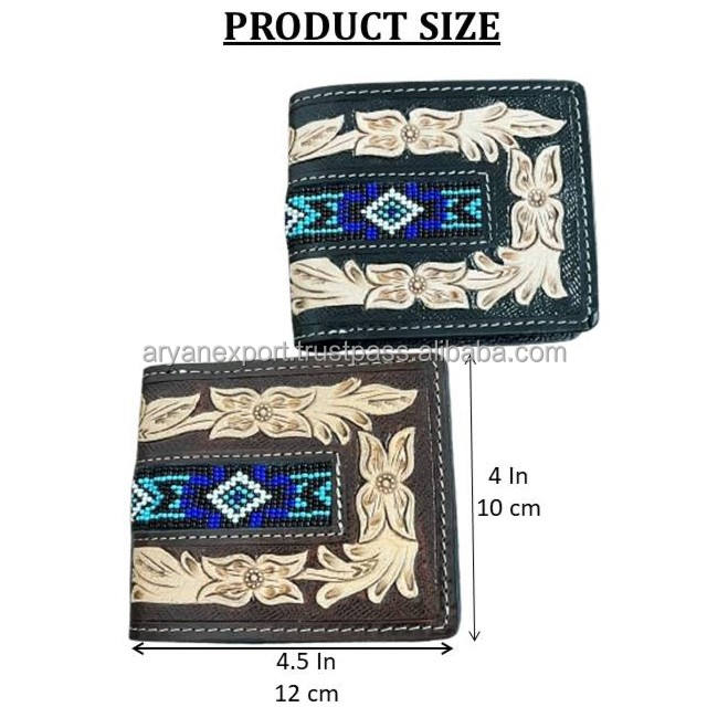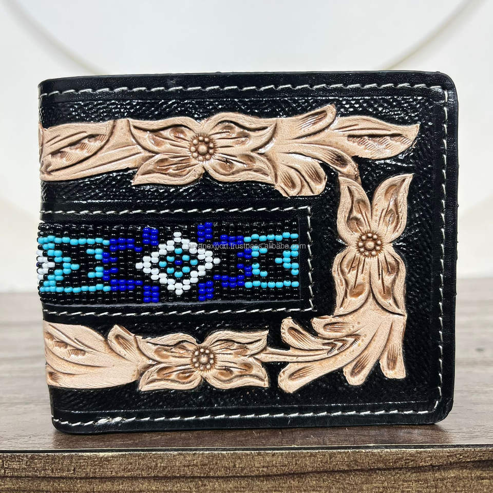 Product Name:Hand Tooled Leather Beaded Men's Bifold Wallet