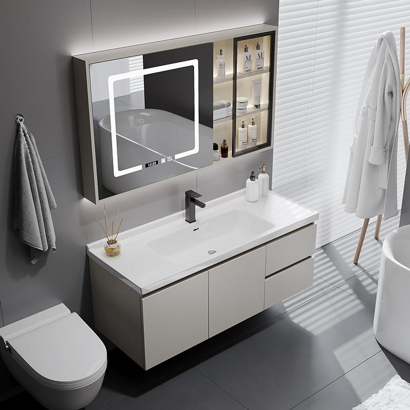 Armoire de salle de bain murale intelligente avec miroir intégré, en MDF, résistante à l'eau, au design moderne et minimaliste, personnalisable