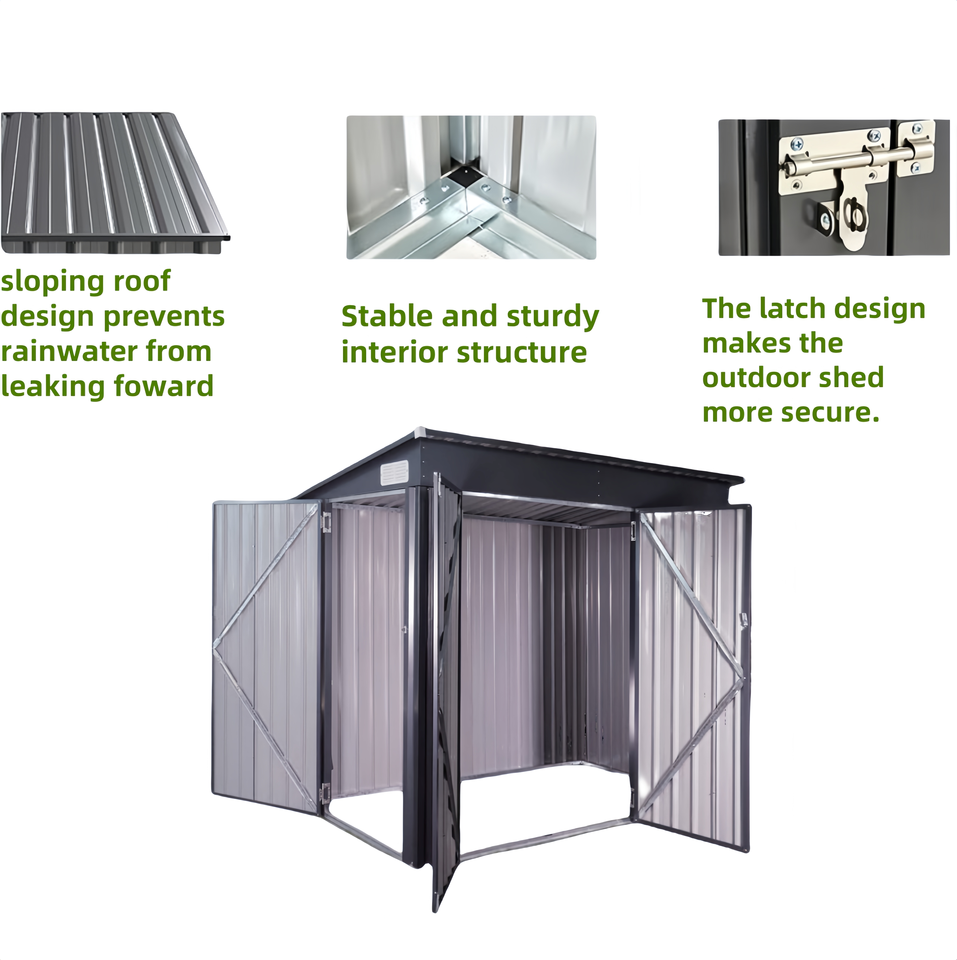 Toit en pente personnalisé étanche et facile à assembler Conception métallique multi-portes Idéal pour le stockage d'outils Abri de jardin pour le stockage d'outils