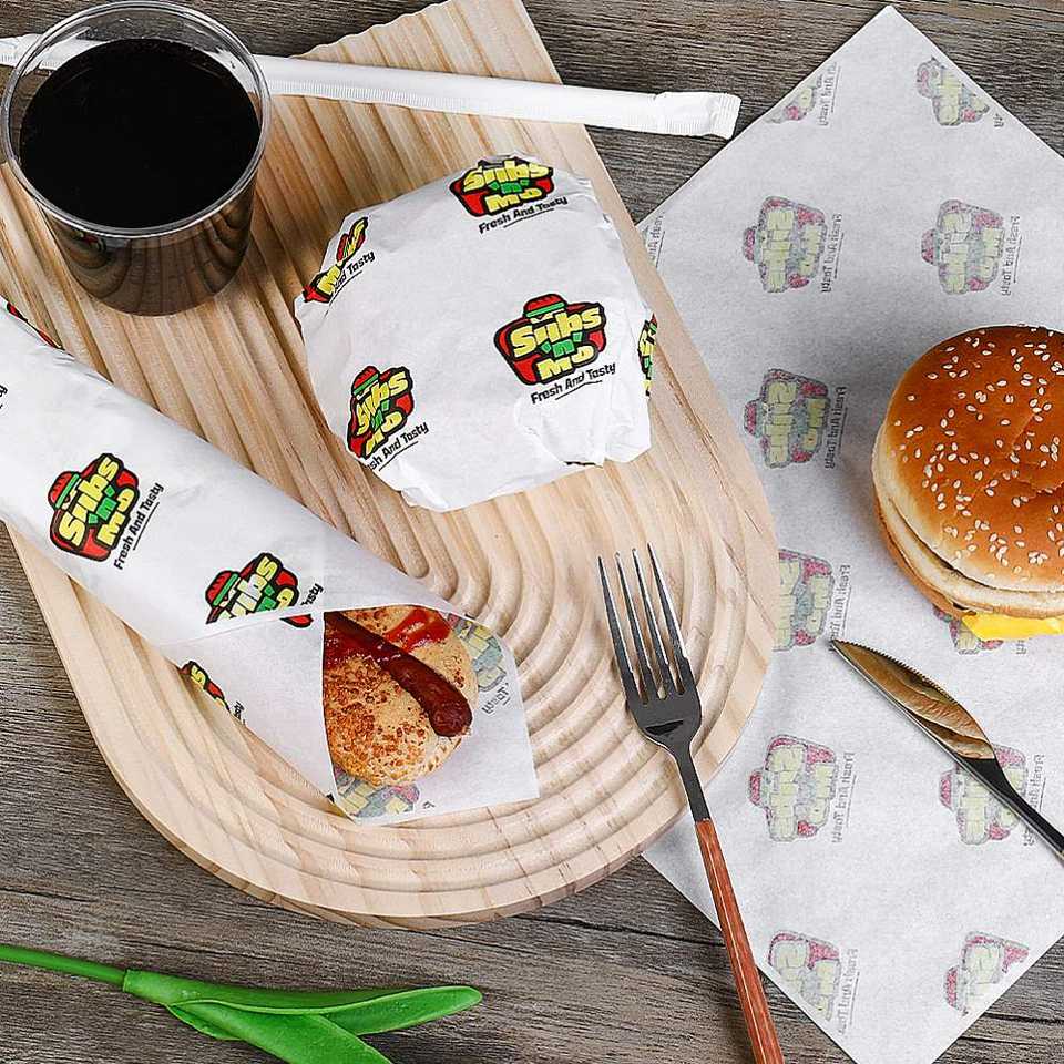 Papier d'emballage pour hamburger en nid d'abeille en feuille d'aluminium Papier d'emballage de fast-food imprimé avec logo personnalisé pour restaurant Papier d'emballage pour hamburger