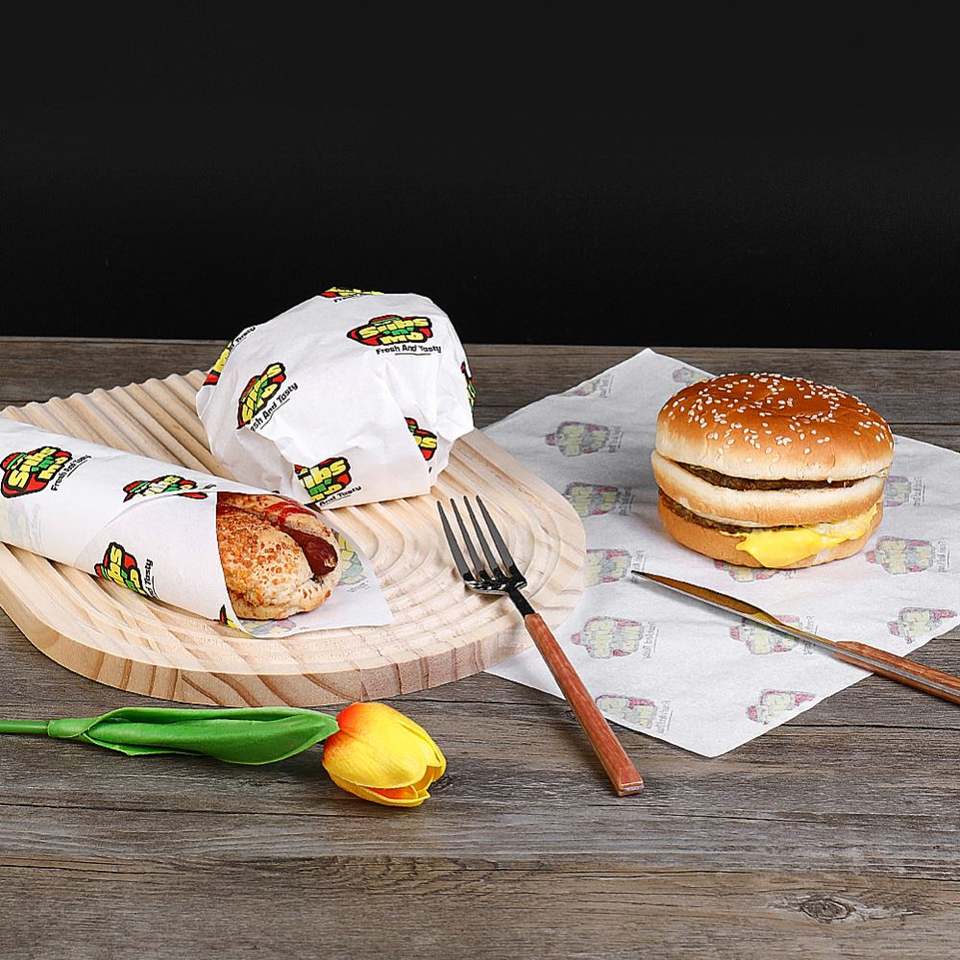 Papier alimentaire imperméable personnalisé, écologique, vierge, enduit, résistant à la graisse, pour l'emballage de gâteaux et de pains