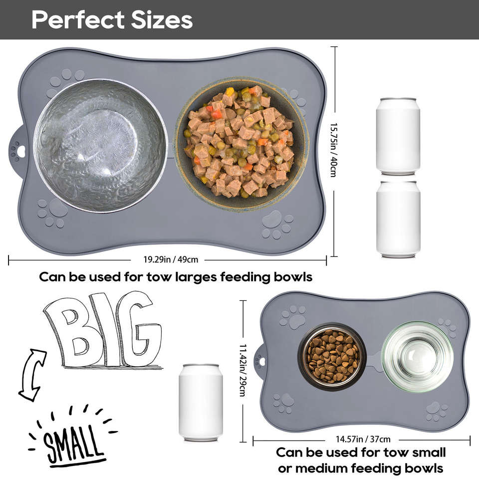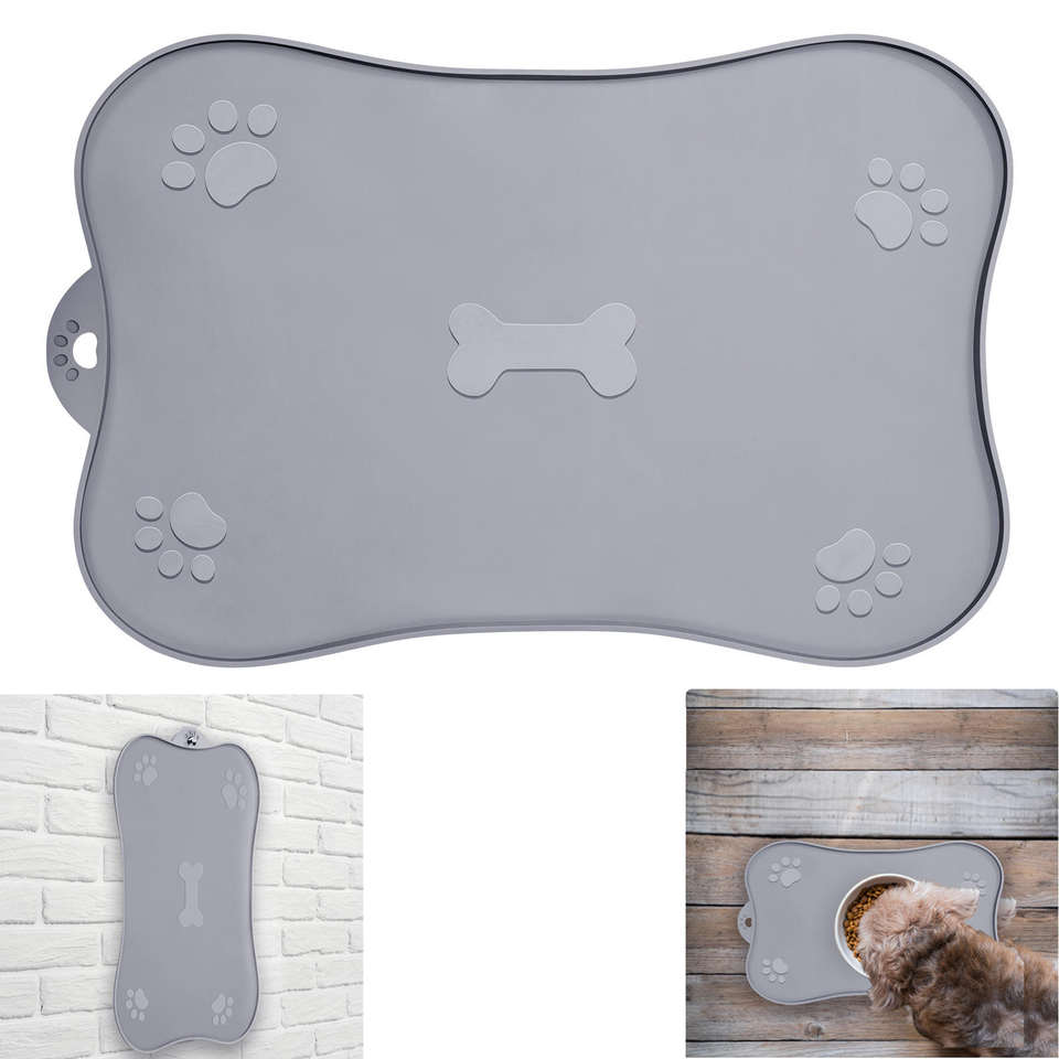 Tapis d'alimentation pour animaux de compagnie en silicone de qualité alimentaire, personnalisé, imperméable, antidérapant, avec bords surélevés, durable, pour gamelles de chien et de chat