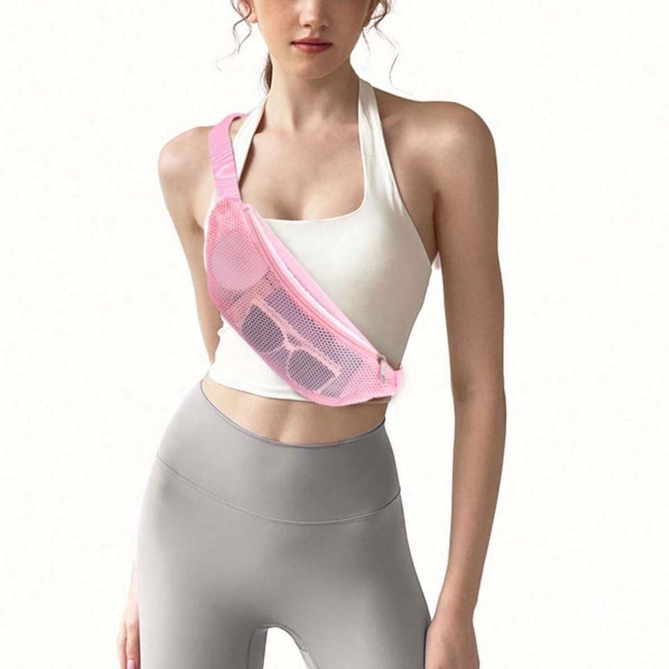 Sac banane de poitrine personnalisé en PVC et polyester, imperméable, pour course, cyclisme, plage, avec maille ajourée