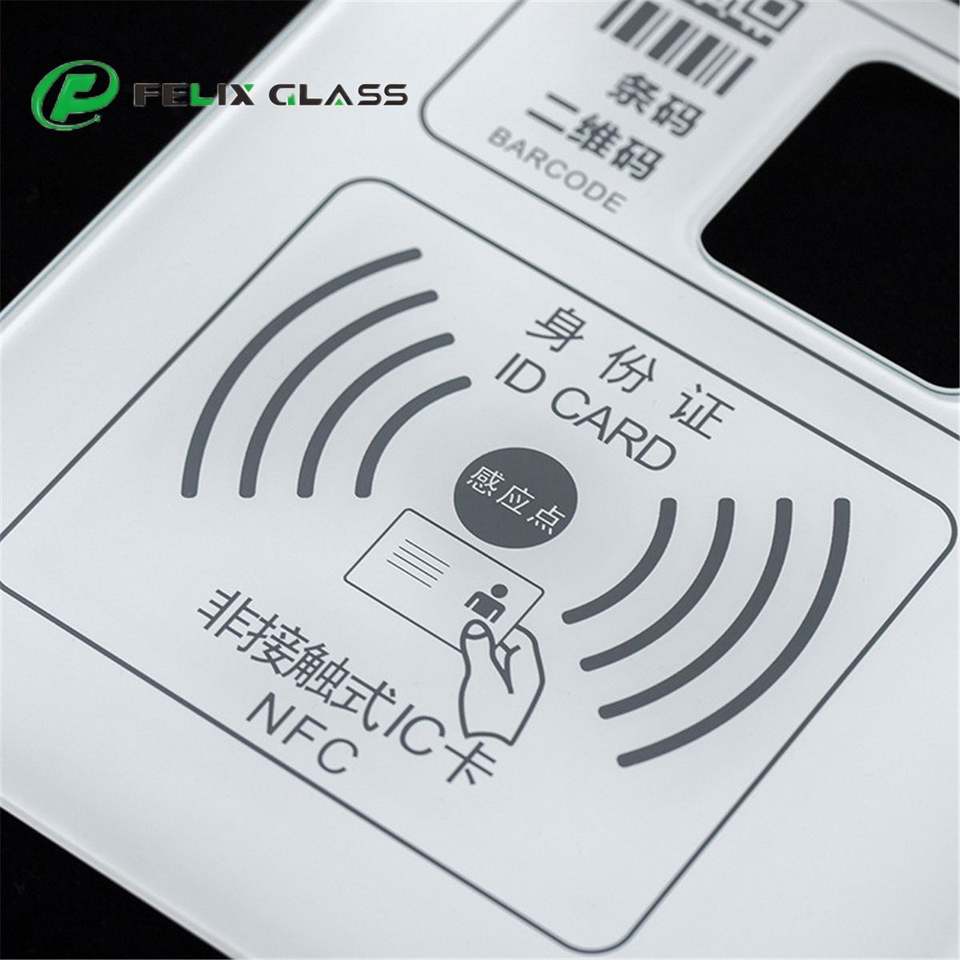 Écran d'affichage personnalisé en verre trempé blanc avec code QR à scanner, chargeur, impression sérigraphique, anti-UV, haute luminosité