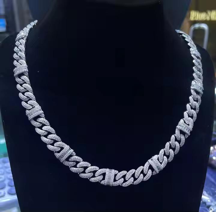 Collier à maillons de chaîne cubain multicolore lourd de 14mm plaqué or blanc personnalisé pour hommes
