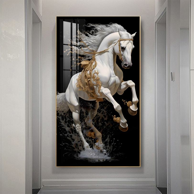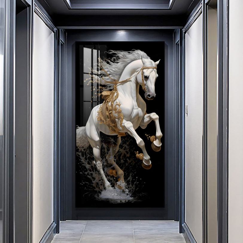 Lampe en porcelaine cristalline avec image de cheval blanc personnalisée, décoration murale pour hôtel, salon, chambre, entrée, couloir, LED