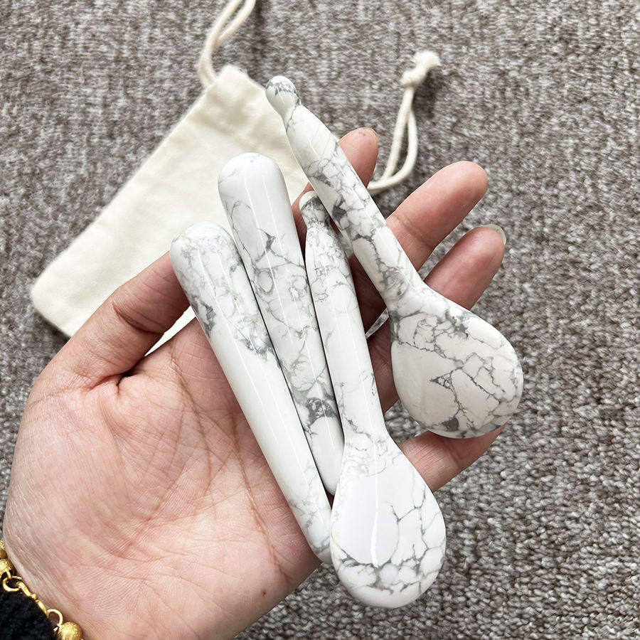 Natural White Turquoise Reflexology Massage Stick and gua sha spoon